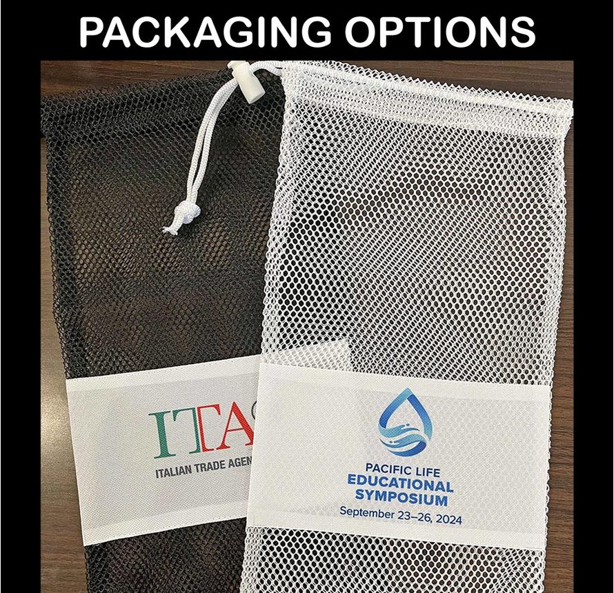 These lightweight, breathable bags are the perfect packaging solution for sand imprint flip flops, beach towels, or any promotional giveaway. They also work great as standalone items for tradeshows, corporate events, and welcome kits.